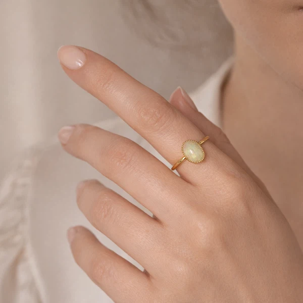 Montée sur un anneau fin en plaqué or 24 carats, OPALA incarne l’élégance, la rareté et la poésie minérale.