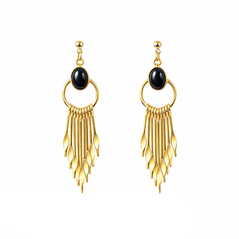 Boucle d'oreilles INDIA dorure à l'or 24 carats haut de gamme et pierre agate noire. montée sur un clou d'oreille élégant. Un bijou bohème au design moderne et chic.