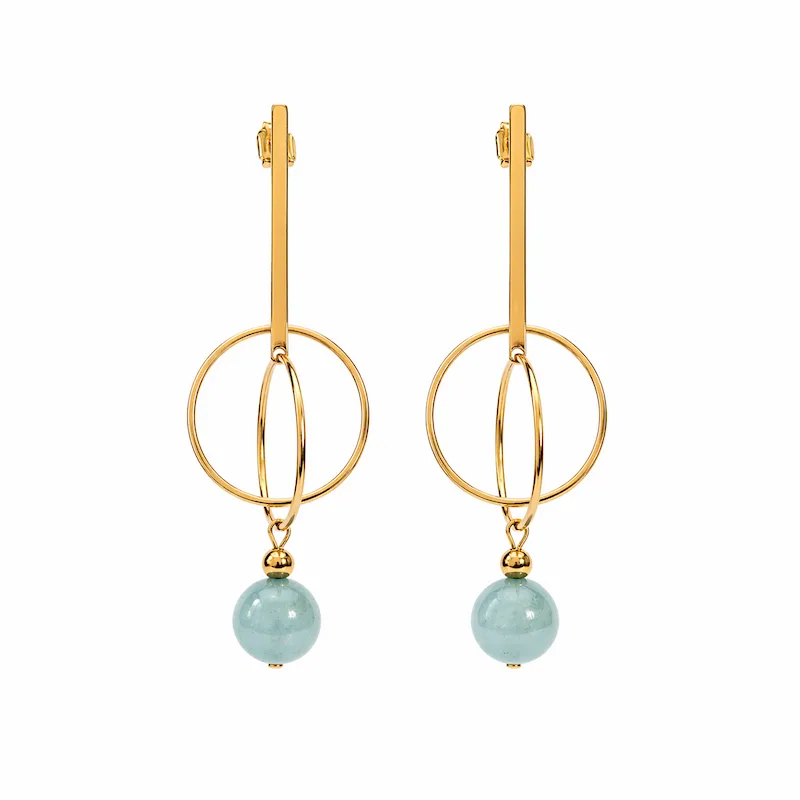 Boucles d’oreilles dorées à l’or 24k avec perle en pierre naturelle au choix. Design chic, moderne et intemporel. Légères, lumineuses, fabrication française.