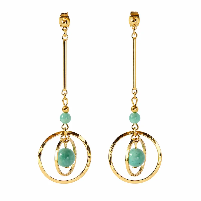 Boucles d'oreilles anneaux et tiges dorés à l'or 24 carats premium avec pierres naturelles au choix. Bijou fait-main en France, élégant, chic et original