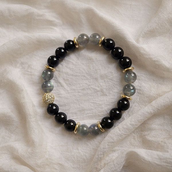 Le contraste entre la labradorite lumineuse et l’onyx noir mat crée une harmonie visuelle raffinée.Ce bracelet se porte aussi bien au quotidien que pour des occasions spéciales. Il s’adapte à tous les styles : bohème, minimaliste, chic ou naturel.
